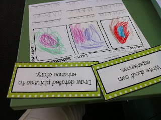 We use the rubrics included in the new Lucy Calkins books right away at the beginning of the year. I have simplified the wording in the rubric for my kindergarten students for my VOICES goal cards. I posted the goal setting sheets I use in my post here: