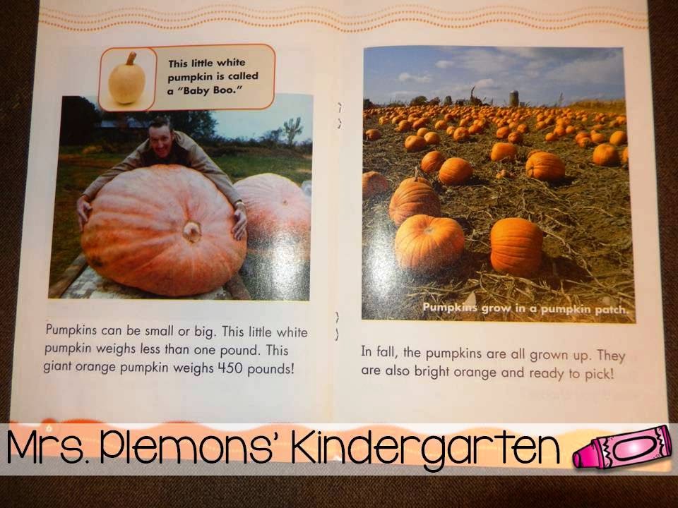 Next, students learn about the life cycle of a pumpkin. I love the lopsided pumpkins on this page. 🙂
