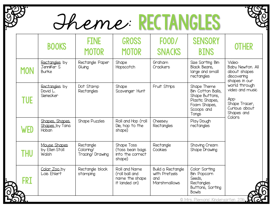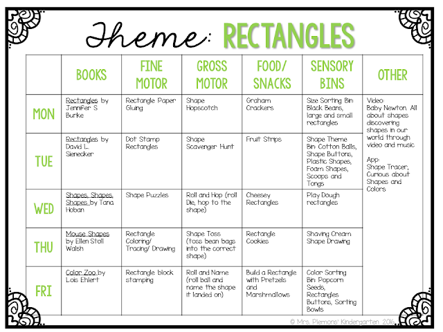 We focused on rectangles this week as we work our way through the basic shapes. Here is what we had planned: