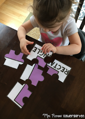 Madelynn loves her puzzles! so we did our rectangle puzzle and practiced the circle and square from the last two weeks too. I made these easy printables for each shape and you can grab them here.