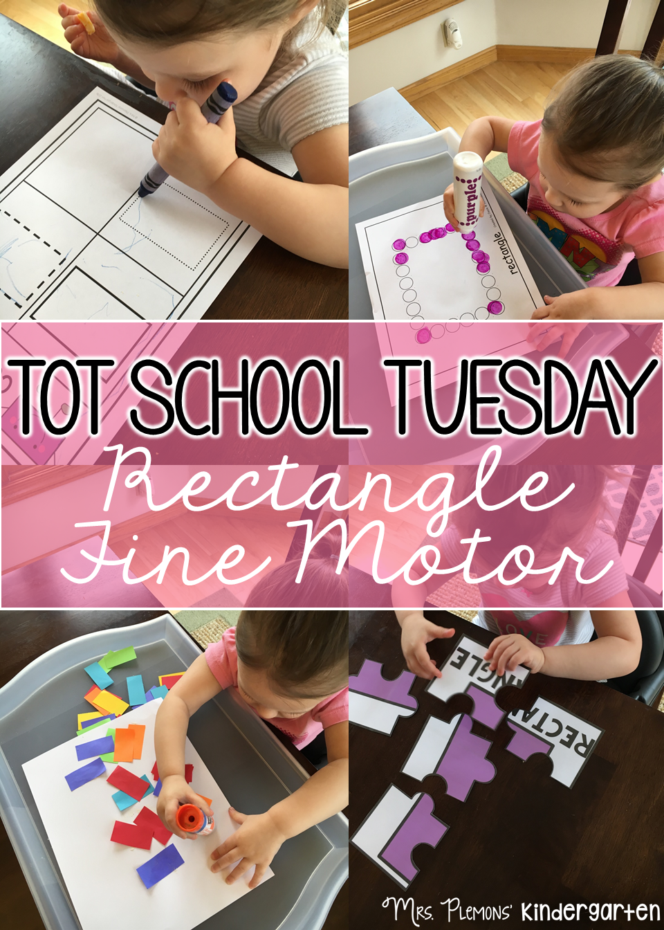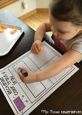 Madelynn LOVES her dot stampers, so we practiced making a rectangle this week. I found the printables for each shape here.