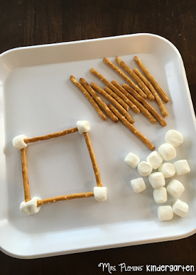 Building with pretzels and marshmallows was perfect for squares. We made a few together then M mostly just shoveled marshmallows in her mouth 🙂