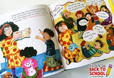 See all of those kids blurting out every adorably crazy little thought running through their brain? Yeah that’s pretty much what the first kindergarten read aloud looks like every year. Sometimes it doesn’t make sense to a five year old why they can’t share something that is just SOOO important to them, but this book really shows students what it would be like if everyone didn’t follow the rules.