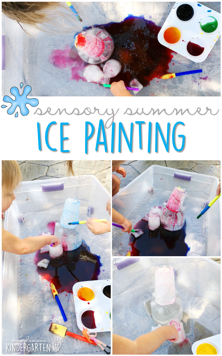 After we were a little tired of playing with princesses, I added some liquid watercolors and paintbrushes to our bin and we painted the castles before they melted down too much.